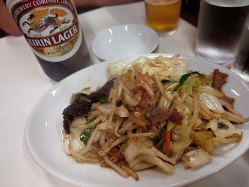 今回は嫁さんからのリクエストもあり、夜営業していないからと近く来てみたらあれ?並んどるやる雰囲気!てな訳で、アチシのマイセッティング→ビール+餃子+野菜炒め単品からのもやしそば+ライス食べちゃいました〜