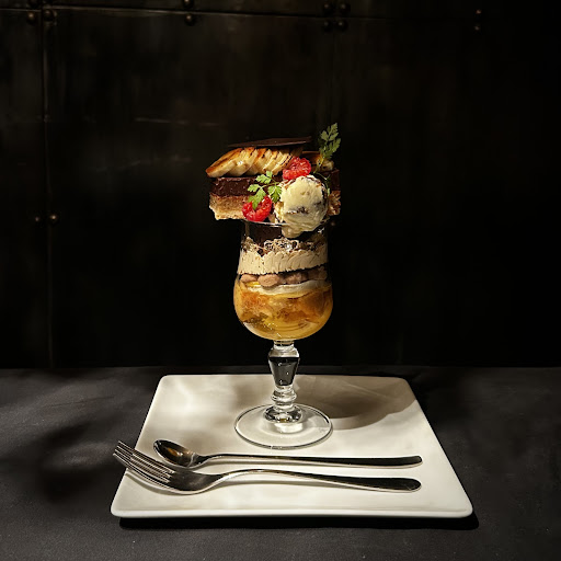 店内ではテイクアウトのほか、地下1階にカフェスペースが併設されておりデセールプレートを楽しめます。席数は15席ほどで黒を基調としたシックな内装が大人な雰囲気を創り出しています。