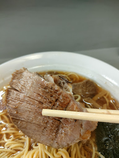 時刻は、12時20分で店外には、並びのお客さんが順番待ちしています!並んでいる間も魚介の良い香りが漂い、待ち切れない気持ちでイッパイになります! 20分位、外で待ち、ようやく入店出来ました!奥のカウンター席を案内されて着席します!早速、壁上部にあるメニューを拝見し、ソコから八王子ラーメンの特盛りを注文します!店内には、地元の家族連れの常連客がくつろぎながら、土曜日のお昼ご飯を楽しんでいます!店内は、L時型のカウンター席とテーブル席がそれぞれあり、お水はセルフで入口入って左側にあります!厨房では、女性の店主と女性の店員さんが注文の確認をしながら、鉄火場の様にラーメン作りに追われています、店内には、先先客だった家族連れのお客さんが、未だ注文した料理が来ず、待たされている状態で少し不安になります、徐々に注文した料理が届きはじめて、いよいよ自分かな?と思っていましたが、注文した八王子ラーメンは、来る気配がありません!混んでいるから仕方ないかなと思っていると、厨房から店主と店員さんが、話しているのが聞こえて来ました、話を聞くと、どうやら自分は、忘れられていた様です、先客の3名が食べ終わり帰る頃に、ようやく八王子ラーメン特盛りが到着しました! 苛々する気持を落ち着かせて、写真を撮るのを忘れて、腹の虫の主張に任せてラーメンを啜ります、中細麺が魚介と醤油の旨味と良く絡みます、スープもコクがありスッキリしていて後味引く美味しさです!鼻孔を抜ける魚介と醤油の香りを楽しみ、喉越し良い麺を啜る、幸せな時間ですね!麺とスープをほどほどに楽しみ目指すは、チャーシューです!大ぶりで厚めのチャーシューを口に入れれば程良い柔らかさで、噛めば肉の上品なコクや旨味が溢れ出して来ます!素直に、美味しいチャーシューです!美味しいラーメンに気を良くして、麺を啜り、玉ねぎとスープを楽しむ、を繰り返します!最後にワンアクセントの生姜を齧って、サッパリした所で完食です!全体的に安定した美味しい八王子ラーメンでした!サッパリと食べれたお陰で、体と胃は、ラクラク気分です!シンプルな八王子ラーメンですが、コスパの良さと、後味引く癖になる味わいは、非常に完成度の高い八王子ラーメンだと思えました! 皆様も、デンデンさんで完成度の高い八王子ラーメンをお楽しみ下さいね! 晴天の土曜日に並んだお店で出会った八王子ラーメンは、地域に愛され、地元に根付く癖になる美味しいラーメンでした!それでは、美味しい八王子ラーメンに感謝をして、ごちそうさまでした! ラーメンの全体写真を撮り忘れ、誠にスイマセ...