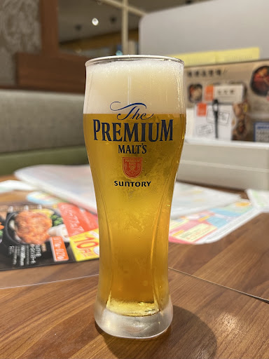 昼にビール2杯を飲んでいたこともあり、ここではビール1杯だけに。プレモルの生が、アプリクーポン利用で100円引きの480円になりました。