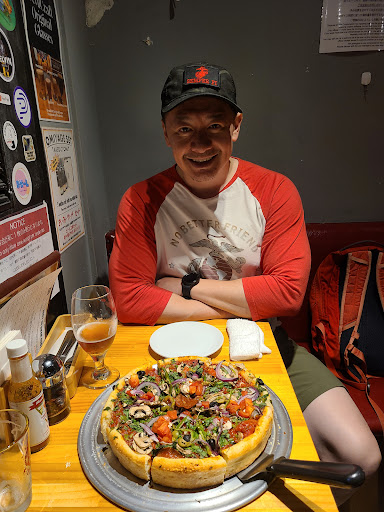 There are things I really like about this place. The overall vibe is fantastic. It feels a lot like an urban American brewery, but it’s stacked up on itself in true Tokyo form. Every inch of this place has been maximized for use. There’s even a table for two halfway up the staircase between the first and second floors. I also really like the way the pizza looks. It looks like it’s going to be amazing. The staff and service was also really great! Now on to the downers. The pizza was decent. I’m used to Chicago deep dish pizza that’s... deeper? I would have liked more toppings and cheese. There is actually an option where you can shell out more money for more toppings, but the pizza was already pretty pricey (¥3300ish). Perhaps the mega price version is a lot better. The crust was also okay. Just not as dense and buttery as I was expecting. Compared to other Tokyo pizza we’ve had, this place was actually pretty good. Just go in understanding that it’s not the all-out deep dish assault you’ll experience in America. Another disappointment was that they forgot to add the pepperoni to one of the pizzas, but still charged us ¥500 for it. It really would have been better with pepperoni. I want to like this place, though. Maybe we came...