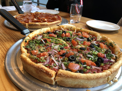 Read moreReally good deep dish pizza. We ordered the devil works deep dish Chicago style large regular. I felt it's not as oily or overly salty or cheesey as American deep dishes that I've had before. Tomato sauce was a little heavy but it tasted very fresh, vegetables included olives, and mushrooms and it was all fresh and delicious.