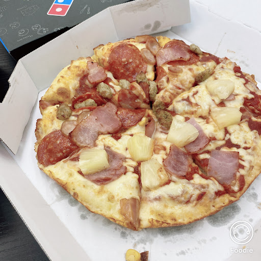 Read more日曜のランチで訪問 数少ないドミノ・ピザの食べ放題対象店 コースは三つあり Aコース:2000円 14種のピザ食べ放題 Bコース:2500円 ピザ全種食べ放題 Cコース:3000円 ピザ全種食べ放題+サイドも一部除き食べ放題 今回は様子見がてらAコースを注文 食べ放題ルール ・時間は11:00~(10:30開店) ・一度に二個まで注文可能 ・選べるピザ生地は以下の3種 ハンドトス、パンピザ、ウルトラクリスピークラスト ・選べるピザ シンプル&クラシックのSサイズ ・ドリンク1本付 ・時間は60分(最初のピザ到着から?) 店内には4人用と2人用のテーブルがあり、こちらで食事 席で待つこと10分程でピザが到着、 1枚目…ギガ・ミート ペパロニ、ベーコン、ソーセージがのったピザ、肉々しい一品 2枚目…クワトロ・2ハッピー 炭焼きチキン、マヨシュリンプ、ドミノ・デラックス、 マルゲリータの4種がのったピザ。 3枚目…クワトロ・ハッピー アメリカン、マルゲリータ、ジェノベーゼ、トロピカルの 定番4種ピザ 4枚目…ガーリック・シュリンプ 大エビにマヨとパセリとガーリックがトッピング 5枚目…ガーリック・マスター ソーセージとベーコンにWでガーリックを効かせた一品 6枚目…ダブルモッツァレラ モッツァレラチーズ(ダブル)、トマトソースのピザ クリスピーはカリカリでトロッとしたチーズに良く合います。 ハンドトスも1回注文しましたが、耳があるタイプではなく 全体的に厚めの生地...