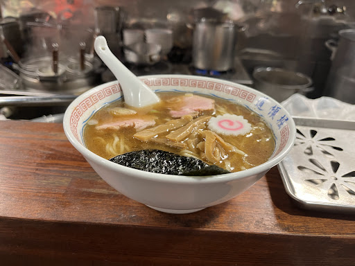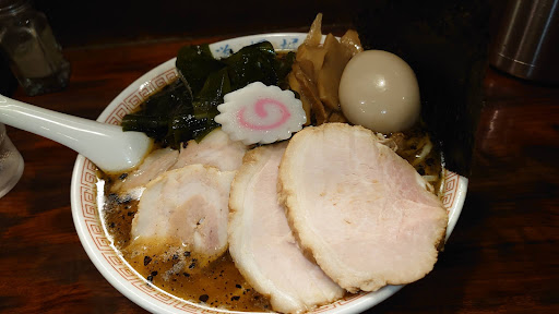 当方、ラーメンが大好きです。中華そば・くっさい豚骨系・担々麺・味噌ラーメン・塩・醤油こだわりなく幅広いジャンルのラーメンを食べます。 レビューは滅多にしないけど、本当に美味しいとき、逆に疑問に思うレベルだった時にするタイプです。 今回、こちらのお店の近所に来ることが増えたので行列が気になり来訪。 10人くらい並んでいましたが30分くらいで入店。おばさんの店員が「1名様どーぞー」と言ったので最前列の自分は入店し、店内すぐある券売機で食券を購入。『特性中華そば・中盛・小辛』にしました。席はどこかと視線を走らせると、カウンターに1席、水だけ置いて有り、そこにさっきの店員のおばさんが立って待ち構えていたので、「こちらにどーぞ」も「いらっしゃいませ」も何も言ってくれないけど「まぁあそこだろう」と近寄ると、そっと手を差し出すおばさん。食券を渡せという事だと察し、「お願いします」と言いながら渡すも、なにも返事はしてくれず。(笑) 食券を確認すると、カウンター内(厨房)のスタッフにオーダーを伝えていました。 待つこと14~5分で出てきました🍜。まず見た目の印象は良かったです。ちゃんと「特製感」があって期待値が上がる見た目。 【ここからはついに味のレビューになります】 まず一言で言うと、とにかく評価が難しいラーメンです。 美味しいか美味しくないか?どちらかで答えろと言われたら凄く悩む。 多分、基本的な・・・ベースにあるもの・・・(表現が難しい)は 「美味しい」です。 ・チャーシュー⇒煮込んだ系じゃなく、低温調理しているようなジューシーさで肉肉しく、素直に美味しい。 ・メンマ⇒これとチャーシューをつまみに呑めるめるレベル。大きくて、食感よく、味も良く染みてて美味しいです。 ・わかめ⇒わかめがオマケな感じじゃなく、結構なインパクトで入っており、しかも良いアクセントになっていて、過剰な磯臭さも無くおいしいです。 ・麺⇒ストレート麺。中華そばだとちぢれ系が多いですが、ここは細いストレート麺。でもこしがあって、僕は嫌いじゃないです。美味しい。
