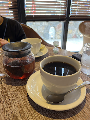 ソファーに机、暖炉、お手洗いの調度一つ一つにも、選んだ方の想いが込められているのを感じます。本棚もいわゆる飾るだけのインテリアではなく、手にとって興味を持って閲覧できる取り揃えでした。 空間は良い意味での「古き懐かしき昭和」、でもお料理や環境はこれまた良い意味で「令和」です。 見慣れたドトールコーヒーのメニューではなく、このお店独自の少し高級な種類の多い飲み物とお料理。珈琲もいわゆるドリップコーヒーではない香りとお味。 豪雨の午後でしたが、裏庭からほのかに聞こえる雨音とともに...