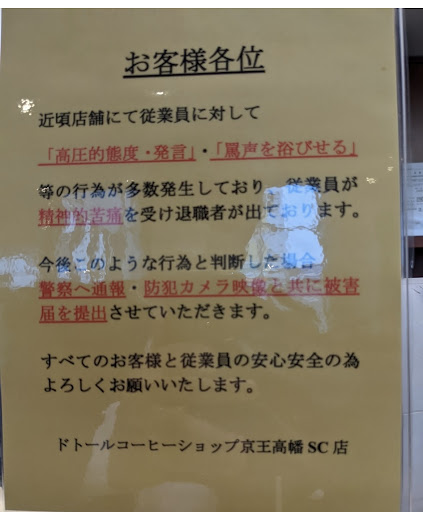 Read more本日、ドトールを利用した際に非常に不快な思いをしました。