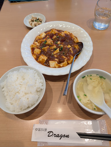 Read more午後の仕事場所の近くで「町中華」と検索したところ「中国料理ドラゴン」さんを発見。早速行ってみました。幹線道路に面したお店で駐車場はお店の前に数台停められるようになっていました。交通量が多いので駐車時にはお気をつけください。町中華をイメージして行きましたが外観がオシャレ。店内も広く明るく家族連れのお客さんが多く「食堂」というより「レストラン」といった雰囲気でした。スタッフの方々の動きもテキパキしていて感じが良かったです。ランチメニューが豊富でどれも美味しそうでしたが麻婆豆腐が食べたくてライスと一緒に注文しました。割と早く運ばれてきました。麻婆豆腐は辛過ぎず塩加減、旨味も絶妙でとても美味しかったです。ただ水溶き片栗粉でつけたであろうトロミのダマが気になり残念でした。それ以外はバッチリでした。(^o^) ライスについてきたスープの味わいがアッサリでサッパリしているのにコク深くこのスープを麺類のスープに使っているならどんな味わいなんだろうと興味を持ちました。また来る機会があったらぜひ麺類をいただきたいと思います。ごちそう様でした。(^o^) ※メニューが豊富です。小皿、大皿と盛りも選べます。空調の効いた店内で美味しいお料理を...