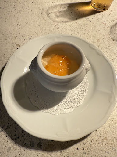 生の鰹を使ったお皿とホワイトアスパラガスのお皿(写真無し😅)が、秀逸の美味しさだった。 生の魚も、ホワイトアスパラガスも、最近では軽めに仕上げるところが多いかのように感じているが、香りの強い鰹を見事に他の食材と合わせて、美味さだけを引き出していたし、ホワイトアスパラガスは、強くソテーしないと出ない香りもしっかり引き出して、これまた秀逸なソースで仕上げて、生ハムと一緒に食べることで、どっしりとした、これぞフレンチなお皿になっていた。
