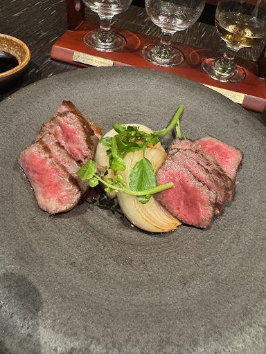 Elegant, modern locale offering set menus with steak, sashimi & appetizers, plus wine, beer & sake.