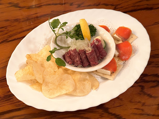 +サービス料金:10% . 〈メモ〉 友人との定期飲みとして伺ったお店 24年8月.月曜日の夜19時に2名で予約して伺い、店内8割方埋まっておりその後満席が続くといった状況でした . ・イーグル定番セット イーグルさんと言ったらコレ!といったメニューの詰め合わせセット 内容は「霜降りビーフ」/「サーモンチーズカナッペ」/「ポテトチップス」となっていました