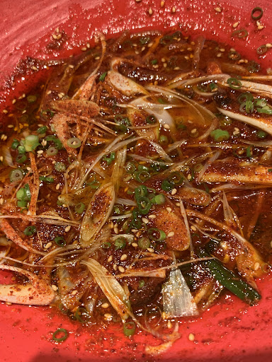 ・〆の鬼殺し麻辣麺 また鬼現る!超激辛唐辛子キャロライナリーパー入りの苦辛いスープに、もちもちした麺が甘く感じて癒やされた。デスサワーを飲むと、さらにひりつく辛さがなかなかひかなくなるから要注意!