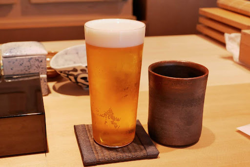 カウンター席は周りとゆとりのある距離感で程よく、パーテェーションで分けられてます。 久しぶりの再会にゆったりゆっくりお寿司を堪能したくてウズウズしていたので、席についても、ドキドキ。 今宵は久しぶりの外食なので コース2万円のコースにしました。 坂を登ったからなのか、ただ息があかったのか、 怪しいですが(笑) とりあえず上がった息のクールダウンで。