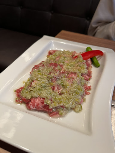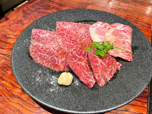I have never eaten raw meat until I came to Kintan. We ordered a beef combo for the table that had this raw meat dish with peanuts on top and it was SO GOOD!! I don't even like tongue, but I ate the tongue here and it was super delicious. The only thing I didn't like in our combo was the steak, it was more chewy than I expected with all the great meats we already had prior. The A5 MELT IN YOUR MOUTH, I wish we had more of that meat. They give you a Korean fusion appetizer/side dish plate that has kimchee and salad which was good (also comforting being that I'm Korean) overall experience was wonderful. Came out to about $100/person but the meat quality was worth it. I would definitely come back again. Oh another impressive thing to note is the door man who takes your coat, remembers which coat is yours when you leave without you even having to tell him! Keep in mind the restaurant is packed with lots of people but without any hesitation he pulls the correct coat out for each...