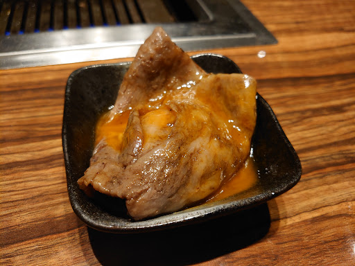 お肉は5ミリくらいの厚みがあり、 まろやかな脂があまさがあってこれまた美味しい〜 ハラミよりは脂少なく、ヒレよりはジューシー。 程よいバランスで絶妙にのった霜降りの赤身肉が素晴らしい。