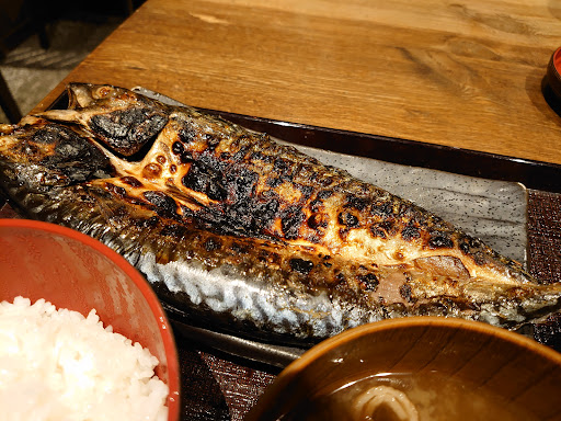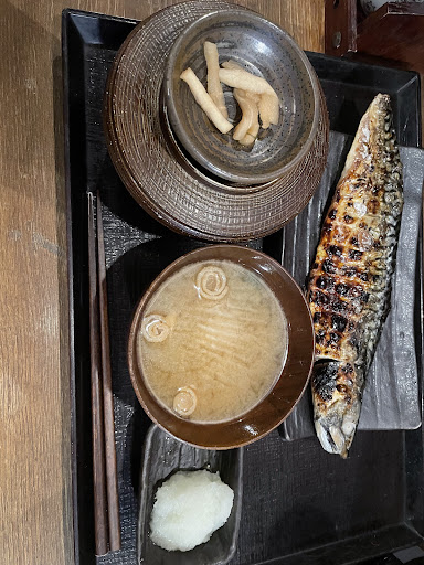 席に着き、しばらくすると、焼きたてのさばが運ばれてきました。外はカリッと香ばしく、中はふっくらとした身がジューシーで、脂ののりも絶妙です。大根おろしと一緒にいただくと、さっぱりとした味わいが広がり、ご飯が進みます。味噌汁と漬物もシンプルながら、全体のバランスを引き立てていました。