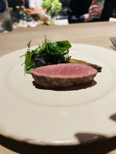 Carne イベリコ豚 プレサ/アンダルシア 『プレサ』とはイベリコ豚の肩ロースの一部で一頭から僅かしか取れない希少部位 部位の問題なのか調理法の問題なのか分かりませんが鹿肉のようなさっぱりとした赤身で私が知っているイベリコ豚とは全然違いました 千葉県の長茄子、能登半島『あんがとう農園』のミックスハーブ、モロッコ風のスパイスソース『モルーノソース』(クミン、パプリカパウダー、オレガノ、ニンニク、コリアンダーetc)を添えて