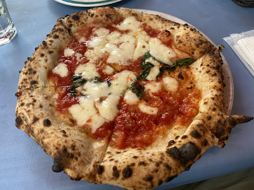 I got a Margherita pizza and it arrived FRESH out of the oven. The oven temperatures are very hot which makes the dough really nice and crispy but airy and fluffy inside. Nice color and flavor on the dough.