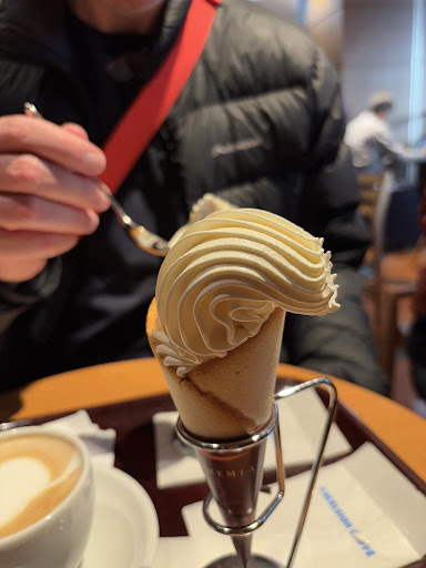 We ordered 4 cremia and 1 cafe latte. We don't speak Japanese. Order was received fine, but we could tell that the lady who took our order didn't know how to prepare the cremia, because twice, she went to the back room and we could hear her say "cremia" and she looked flustered. Anyway, she attempted to prepare them. The first was very good, the other 3 varied in size. I don't blame her, because it was clear she attempted to get help, but none was given. I would hate to work in this team if that's their attitude. The barista was smug and not friendly. He made my latte with zero effort on cafe art (I don't really care about the art, just as long as it tastes good), but then he made the next latte for a Japanese customer with a classy heart cafe art. Racist barista? Not sure, but makes me sceptical, why is there a double standard? We paid ¥2680 for 4 cremia and a regular latte. I give 2 stars for service because I felt sorry for the lady who got no help from her team mates and the double standards from the smug barista. Visit was at 1256 on January 14, 2025. I wouldn't return to this Excelsior.