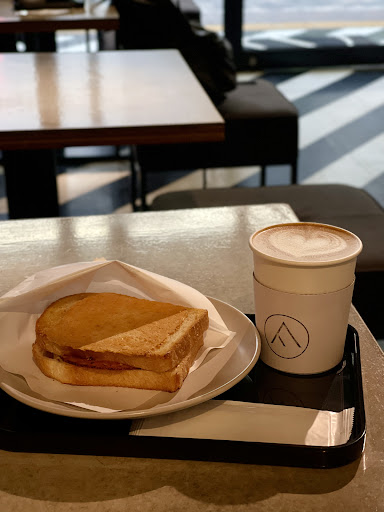 Textile-themed coffee shop in a compact, light-filled space serving specialty coffee & sandwiches.