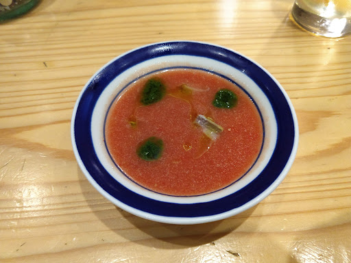 Read moreGreat Japanese Italian food in a cool atmosphere with an open kitchen and charcoal grill. Service was excellent and almost every dish we had was delicious. There's a 300 yen per person table charge that comes with a tasting of their gazpacho. My wife and I ordered the corn pana cotta with sea urchin, squid ink rice croquettes, grilled mackerel (sanma), lasagna, grilled lamb, Genovese pasta, and bread. The bread we got was a little burnt and the pasta tasted a little different from the pesto we're used to but was cooked perfectly al dente. Every other dish was amazing. My wife, who typically doesn't like mackerel, found that fish to be very good too. We got the zabaione ice cream for dessert which was OK. Overall, we had a great experience and would come back.