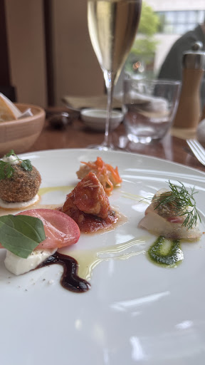 This restaurant is a nice break from Japanese food. For the Italian purist, they won’t find the food authentic. it is more Italian dishes revisited by the Japanese. Location is in a quite street, a stone throw from roppongi main road, with a very enjoyable terrasse when weather allowed. As an added bonus , when it is Sakura time you have a few trees right in front of you. Probably one of the best terrasse in Tokyo. We started by having a Bellini and good surprise it came with a peach purée and not the peach syrup we encounter so often. Wine list is short but some good wines and decent champagnes. Then comes the warm bread served with a very fruity and nutty olive oil. To start with, we had a white fish carpaccio with bottarga, which was very well balanced with its aroma but also a disappointing Caesar salad which was missing chicken or shrimp and had too few Parmesan or croutons so I would stay away from it. Main course was a margarita pizza way too thin even if I prefer Neapolitan rather than Roma pizza. Penne bolognese was well balanced and quite decent. But the best part was the pastries, I had one of the best strawberry shortcake in Tokyo and tried the mont-blanc before which is also divine . Service is attentive and careful but it is always in Japan. So 4 star for location, drinks, atmosphere and cake but 3.5 stars for the main food. A place to come once...