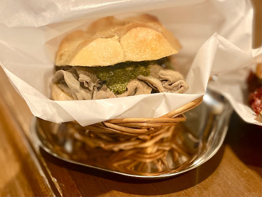 ランプレドットとは牛の第4の胃、ホルモンで言うところのギアラのイタリア語の様です。国産牛のギアラを使用しているようです。他にもハチノスのトマト煮込みのパニーニもあるので次回にチャレンジしたいです。パニーニとはハンバーガーやサンドイッチの様にパンを使った料理のイタリア版のようです。