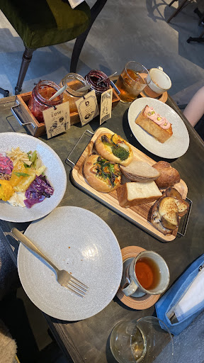 Went for the Brunch (¥1,700 only cards and cashless payments) and it was a very pleasant experience. When you got for the brunch you can opt for either salad or soup. I got the salad and it was amazing, I’d go back only for the salad in a minute. A mix of all the little things I like quinoa hummus pickled veggies fresh fruits etc I think it can please a broad audience and it packs a punch! Then as you’re sat they come offering you the tea they brewed at the time and a platter of the house breads and pastries. From the big platter you can choose four (spoiler: it’s a lot but dw you can take home after what you don’t eat). The breads and pastries are the same sold at the door for take out so you can get a good idea of what they have BUT as I was the last person to enter for brunch I didn’t have many of the options the people that entered early had; I.e.: croissant, chocolate flavored muffins and overall they didn’t have a lot of the things. If you’re picky it could be a deal breaker. What I liked the most though on the table was the option to try a few different types of sliced bread and they leave at the table 3 types of blended jams (blueberry orange and strawberry probably because it’s spring) The interior and service were really good clean and overall new as expected of a place that opened 5 days ago hahaha. Definetely coming back a little bit earlier or for take out as I want to try out their food with coffee (not offered at the shop) as well....