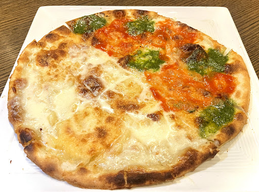 薄く焼き上げられた生地が主役の一品。 プレーンは、素朴ながらも噛むたびに小麦の香りとオリーブオイルの豊かな風味が広がり、シンプルゆえの美しさを感じさせる。 一方でマルゲリータトッピングは、焼き立てのトマトの酸味とチーズのミルキーなコク、バジルの濃厚な風味が生地に溶け込み、シンプルな生地に華やかな彩りを添える。 口に運ぶごとに、イタリアの陽気な風景が浮かび、プレーンとマルゲリータのコントラストが味覚に心地よい変化を与えてくれる。