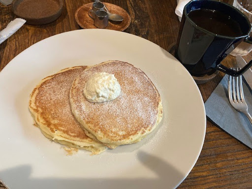 Cafe Forest is an unassuming cafe, but once you taste the food, you realize its value. We ordered the fruit crepe with orange, the classic pancake, and the perilla shiso toast. It was served in succession, toast first, then pancake, and saving the best (fruit crepe) for last. Taking one bite of the pancake, it was the tastiest, most succulent I’ve had in a long time. It’s a simple western style, contrasting the soufflé pancake common here in Japan.