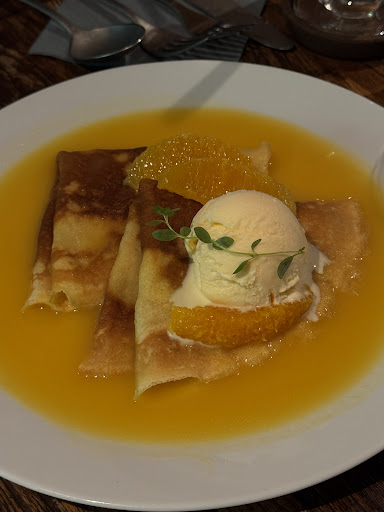 The fruit crepe was a masterpiece. Beautiful presentation, simple, yet delicious. The ice cream pairs really well with the orange reduction sauce, and the textures all match well. It was the most delicious crepe, and very unexpected culinary expertise from such a quaint cafe.