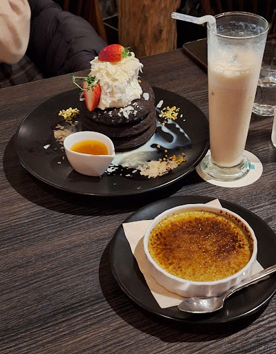 On a cold, December night, after getting soups from the neighbouring soup stock store, me and my friend (or maybe I should say my friend only!) suggested we deserve a sweet treat after dinner, and this restaurant was right there, just a couple of minutes away. It would've been a waste not to get something from this place, right? So I went for the pistachio crème brulé, and my friend ordered the season pancakes. They didn't disappoint, BUT I felt like something was missing from those pancakes, maybe more fruits? ... also I should point out that after 6pm there's a 300円 surcharge per person, which is kinda annoying. As annoying as the waiter coming to get my dish exactly 10 seconds after I finished eating.... I kinda felt like they were low-key trying to push us to leave the restaurant already, but maybe it's just me...