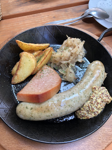 Bratkartoffeln + Sauerkraut + Leberkäse + Bratwurst taste very good :)