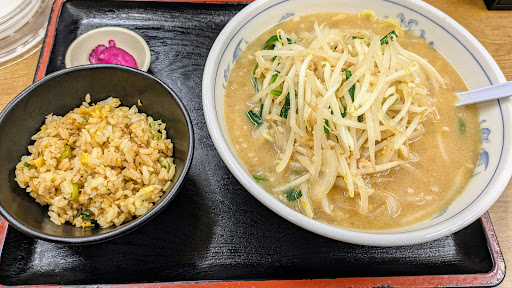 外は寒かったので味噌ラーメンと、半チャーハンを。 味噌ラーメンは麺大盛りにしました。