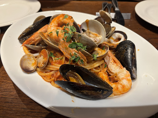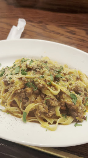 I really enjoyed the service and food here. I had two waiters constantly checking in on me even though it was just me. They were both such cute human beings. The boiled veggies with vinaigrette, pasta and crème brûlée were very enjoyable. The atmosphere was very calm with people quietly chatting and enjoying themselves. The smell of warm garlic bread wafted about and made me excited for my meals. I got the tagliatelle pasta with minced meat. So good. I found that in Japan a lot of places don’t add enough salt for me and before I ate it, I was mentally preparing to have to ask for some but it was just perfect. I will totally...