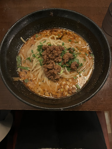 Read more今日はなんの日?ふっふ〜〜♪11月17日は「将棋の日」だそうです。 雨はザーザーすっかり冬将軍の到来でランチを食べに出るのもヒヨってしまう寒さです。 でも、だからこそ、暖めてくれる何かを食べたい!近場で。そこでピンときたのが虎穴さん。いつも長蛇の列でまだ食べたことのない虎穴さんの坦々麺。 雨だし空いてるに違いない。空いてなくても並んでないに違いない。並んでいたとしてもこの雨だし少ないに違いない。 わっしょいと、ザーザーぶりの中向かいましたがあれ?同じこと考えてる人が8人もいる…いや、こんな雨でも食べたい常連さんかしら?兎に角すごい雨なので引き返す気にもなれずに並ぶことに。普段は並ぶの嫌いなのによりによってこの雨の中…トホホ…1人出て1人入り…と10分くらい待った頃に、店内でお待ちください!のアナウンスが。中に入ると驚いたことに、外で私の前に並んで待ってた方々が店内のカウンターの後ろに並んでます。とりあえず冷えきった身体を暖めるべく食券機を睨みつけ1番先頭の坦々麺1,100円をポチリ。そしてまた同じおじさんの今度は隣に並びます…見てると食べ終えた人はちゃちゃっと退店。まぁこれだけ見られてたらそうなるかな。 席に着いて紙エプロンをつけたらそれほど待たずに着丼です。 店内で並んでる時に食券を回収するのである程度の準備がされて流れがスムーズですね。 スープは少なめなためか、麺が頭を出してます。その上にしっかりと味のついたお肉と刻みネギが。 スープは一口目はかなりあっさりとしていてゴワゴワとした太めの麺に合うのかな??と思いながら食べすすんでるとスープの味に変化が。お肉がスープに浸かることで奥行きが出てきたように感じます。これは美味しい。麺のゴワゴワは多少解消されますが最後まで結構しっかりとした口当たり。 少ないと思ったスープの量は私にはちょうど良く、一滴残らずいただきました。底の方にたまった山椒や刻み生姜などが身体をポカポカにしてくれました。 次は汁無しに挑戦したいけど寒いからなぁ。 ホールのお姉さんがちゃっちゃとしてるので、つられて自分もちゃっちゃとしちゃって食券機をじっくり眺める時間もなかったので今度はあらかじめ予習してから来ます〜...