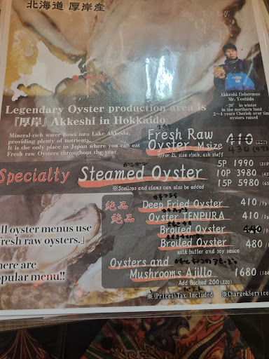 Read moreGreat little seafood place. Tried 3 different oyster types raw, deep fried and tempura... seriously good and also different taste as well. Scallops in butter... amazing but a warning that they are as they come from the sea, so they are not 'dressed' but seriously good.. i had 3.. after the oysters... 3 Scallops could me a...