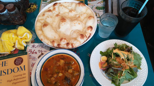 The menu seemed a little expensive, but generous portions. The base of the curry was thin, but subtly flavored and quite tasty. Generous ingredients, too. Not sure about the spice level, but I think Japanese. The naan was round and light, not sweet, with a somewhat unusual flavor. The waitress insisted there's nothing strange about it, but I feel there is some special seasoning. Almost reminded me of unleavened bread. The salad was also unusually nice and the coffee was unusually large. I'll go ahead and give it a high four stars.