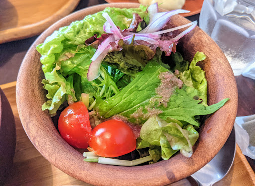 ◇ホゲ きゅうり、紫玉葱、コリアンダー、かぶ、トマト、カッテージチーズを山椒や粉唐辛子で和えています カッテージチーズの量が絶妙で野菜やスパイスの味を1つにまとめています、酸味がありつつ食べ終わると山椒で舌がしびれるサラダです 辛さはピリ辛くらいでした