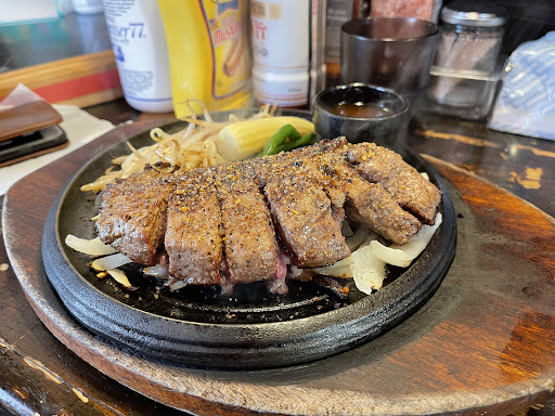 Read more2024.5来店。コスパ良くて美味しいステーキが食べられると友人に聞いて来店。 カウンターのみの小さなお店です。 夕方17時ごろ行きましたがすでに2組常連さんがいてお肉の焼き待ちでした。 2組分プラス私たちの分ということでお肉が焼きあがるまでけっこう時間はかかるイメージ。 待っている間にスープを持って来てくれますがこのスープも美味しい! スープおかわり自由で友人は2杯飲んでました。 友人がランプ200g、私はランプ150gを注文。 ランプ肉が人気みたいなので注文したらめっちゃ柔らかくてクセもなく美味しかったです。 無性にお肉が食べたい!というときにおすすめのお店。 店内が狭くて鉄板も熱く、肉汁も飛ぶので、オシャレはして行かない方がいいと思います。私たち以外の2組はジャージとかTシャツジーンズで来店されてました。駐車場は道路挟んだ向かい側にあります。 看板出てるからどこに停め...