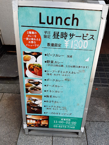 One of the ็พๅๅบ of Curry from Tabelog. The place can be occupied with customers easily, so I recommend you to go there early, like 10 minutes before it is opened. I ordered ใใใฏในใซใฌใผ (Mixed curry), where shrimp, clam, and chicken are added. There are three levels of spiciness you can choose: ็ๅฃ (not spicy), ไธญๅฃ (medium spicy), and ่พๅฃ (Spiciest), and also ใๅญๆง (for kids). The dish is served with a two whole small potatoes with butter for an appetizer. Then the curry is served with almond on top of it, and cheese on top of rice. There are also 2 kinds of pickle for free. Personally, I think the curry base is a little bit too sweet for me, even though I already ordered for ่พๅฃ. However, the meat in the curry...