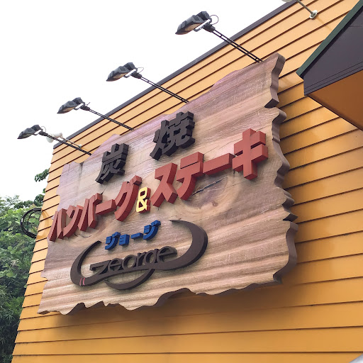 客層は家族層が中心で学生は少ない。幼児連も。こういった専門店に子供連れで楽しめるお店が少ないので助かる! 頼んだのは「特選牛ハンバーグ(150g)」に「カットステーキ(80g)」をプラスしたコンビセット。これにスープ、サラダ、ライスorパン、ソフトドリンクがセットになった「レギュラーセット」。さらにデザートプレートがついた「デザートセット」というものがあるが、それは奥様がオーダー。ソースはいずれも「大根おろしソース」!これ以外頼んだことがナイので、「ジョージ」の魅力を楽しみきれていないかもしれない。息子には「お子様ハンバーグプレート」だが、以外に多いので、大人でもこれで十分な内容では?と驚きます。あと鉄板ではなく、お皿という配慮があります。(注:大人は頼めません♪) 最初はスープ。オニオンスープは優しく美味い。続いてサラダをいただいているとメインの「特選牛ハンバーグコンビセット」とライスが登場する前に、カバンや上着なども臭いが付かないように布をかけてくれ準備がすすみます。店員さんの感じもいい! メインが登場する前に儀式がある。紙ナプキンを木のプレートの1辺に挟み待機する。その紙ナプキンで壁をつくり油ハネをガードしよう。下になる1辺を固定しないと下側が熱でめくれてガードしきれない時があるのでご注意を。 そしてこの時、店員さんが焼き方を尋ねてくるので、希望の焼き具合を伝える。ここはレアがオススメだが、私は表面を少し押さえたミディアムレアにしている。ただ、ソースによっては熱が入り続けていることを考慮しよう。続いてその「ソースをおかけしてよろしいいでしょうか?」と聞いてくるのでお任せして、さらに深く紙ナプキンでガードすることに集中しよう!