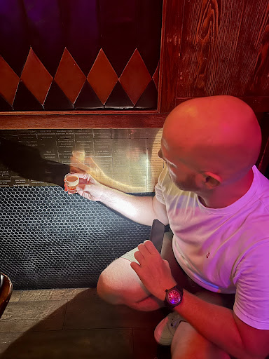 My friend Billy manages this place, on this night someone decided to" bang the drums" whenever you bang the drums you buy everyone in the bar a shot of your choice, this one happen to be fireballs, 93 shots of them( avrg 3 shots per person) N.Y Jay if you are reading this, thanks for the shots. This place is your typical shot bars to start off the night or end the night. Always have a blast here, music choices range ( depends on what the mood is ) but 80-90 rock, to hip hop , to EDM, not really a set music genre, what ever you are in the mood for you can ask the staff. Drink ranges from 900 yen to1000( depending on what you get but that's the avrg prices of drinks around roppongi) some drinks cost more like if you get patron shots or glass wine. If you find yourself there from this review just tell Billy you came because of my review and he might Hook you up with a shot on the...