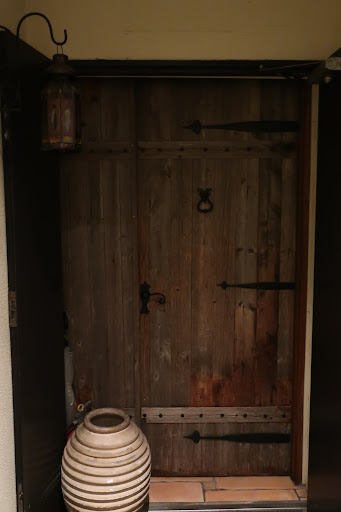 お店は新橋駅から5分程で、第一京浜から少し内幸町側に入ったビルの地下。 地下に入る雰囲気のある階段を下りると、入り口一杯に小さな木を繋ぎ合わせたような少し怪しい様子の扉が出てきて、この扉でいいのか?なんて思いながら、恐る恐る扉を開けると、中から黄色がかった柔らかな光の空間が現れました。 何だかその光景のギャップにいい意味で驚いて、お店のファーストインプレッションは好印象。