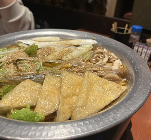 We are visitors from the US and just wanted dinner nearby our hotel. Service started off okay ,but we noticed they were sneaky with extra charges. No where in their English menu was there a table charge mention. This won’t pass in a larger restaurant - atmosphere seems very local/small business. Only had the hostess tell us they charge everyone 300Y each person at the end. She kept pointing at the bottom of the menu which just said Tax is not included, nothing about a service fee. I translated the listed item and it says it was an appetizer, not a table service fee on top of the tax fee. We ordered a vegetable salad but got a cheaper priced salad instead. Yet the bill says the higher salad version. Very sneaky because they don’t think we understand. The main hostess seems nice but she is a bit manipulative. Won’t plan to go again. Food is decent but nothing...