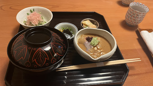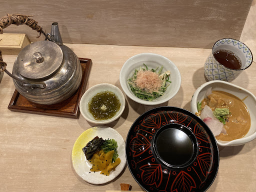 Minimalist restaurant serving refined set meals incorporating local ingredients like sea bream.