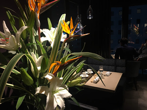 AMBIANCE: 5.0. Located on the 11th floor overlooking a large boulevard in Ginza. It was already quite crowded when we arrived for out 6pm reservation, and we were shown to the 2 best seats for a couple to share a romantic evening. These 2 seats are located at the most inner part of the restaurant, at a wide counter facing the chef's cooking area. The location is quite private, as it is screened from the both the chef and the rest of the restaurant. Directly behind the seats are floor-to-ceiling windows with a nice city view.