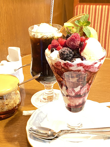 蒲田駅の徒歩圏内で梱包用のストレッチフィルムが欲しくなり、ダイソーとキャンドゥを2件ずつ回って絶望したあと。グーグルマップで喫茶店を検索したらシックな印象のこの店を見つけた。途中でドトールも見掛けたのだがここは落ち着いて休みたい。早速向かうと、パチンコ屋の飲食店みたいな入口と派手派手なメニュー。その奥には昔ながらのガラスケースと食品サンプル。どっちなんだ。 階段を上ると入店待ちの列があったものの、直ぐに店員が人数と喫煙有無を聞きに来た。フロアにはそれなりの人数のスタッフがいて、よく目が届いている。前の人が喫煙席の隣、という所に案内され、事前に気にする方には臭いが感じられるレベルだと説明されていた。クレームがあったのかもしれないがとにかく店員の応対が丁寧だ。私は一番離れた席に案内されたが、まあ同じフロアにある以上無臭ということは無い。 ブルーベリーパフェとアイスコーヒーのセットを頼む。クリームとシロップは入れますかと聞かれ、手元では選べないシステムのようだ。安全のため入れてもらう。ブルーベリーパフェは透明なゼリーが奇麗なオーソドックススタイル。ちょうど良い甘さとフルーツの量で実に良い。 しかし肝心のアイスコーヒーは期待外れだ。一部は深煎りで炭になったような重質タールの味が最初に来て、遅れて抽出し過ぎた高分子量の強い苦みが舌に居座る。銀座を名乗る店によく見られる共通点なので、昔の銀ブラスタイルがこれなのだろう。コーヒー苦手という若者には絶対に飲ませてはいけないやつだ。飾られたクリームは濃厚な牛の脂が感じられ、シロップと共に混ぜ込めば、全体としてはこういうスイーツもあるよねという味になる。 コーヒーのみを追求せず、楽しく飲食する...