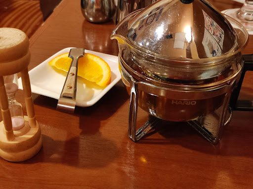 Read moreJR蒲田駅西口駅前広場のすぐ目の前にある、1階にドラッグストアのある和蘭豆ビルの2階にあります。 鉄板焼きや居酒屋等が入っている8階まであるビルで、右側にエレベーターがありますが、ドラッグストア右側の階段を上がって向かいます。 こちらは1969年に銀座と蒲田で創業した老舗喫茶店。全4店のうち2店舗が蒲田にあるのだとか。 蒲田界隈にもう何年も行き来していたのですが、こちらへは初めて入店しました。 老舗喫茶店ならではのクラシカルな落ち着いた雰囲気がありつつ、お洒落な内装。カウンター席やテーブル席、ソファー席もあり、分煙もしっかりされているのが良いですね。 平日の12時半頃だったので、お食事をしてる方もチラホラいました。 創業当時はまだ流通の少なかったモカの豆を自家焙煎していたそうで、一杯ずつ丁寧にサイフォンでいれた香り高いホットコーヒー、粗挽きした豆をドリップで手落としするアイスコーヒー、アレンジコーヒーもあり、コーヒーのメニューだけでも豊富。 悩んだ挙げ句にカフェオレを注文。 しばらくして温められたカップが置かれ、その後店員さんが目の前でコーヒーとミルクをカップに注いでカフェオレを完成させてくれるというスタイルに、驚きつつもこだわりを感じさせられます。当然、お味も文句なし。ただ、それ故に提供までに少し時間はかかるかな。 駅前だというのに騒がしくもなく、落ち着いた雰囲気の空間でゆったりと時間を過ごせます。あっという間に満員になっていたのも納得。 客層は年齢高めかな。 蒲田駅前店が日々行列になってしまうため、2013年にサンライズ蒲田店がオープンしたのだとか。 ケーキや季節メニューも気になったので、また機会があ...