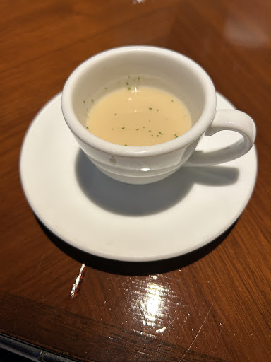 Ci è stato servito come antipasto una zuppa di miso all’interno di una tazzina di caffè davvero molto gustosa. Abbiamo poi ordinato due secondi piatti a base di carne ed il katsusandro da dividere. In conclusione, un dolce in stile francese molto buono.