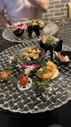 クリスタルのお皿に 綺麗に並んでる前菜たち✨